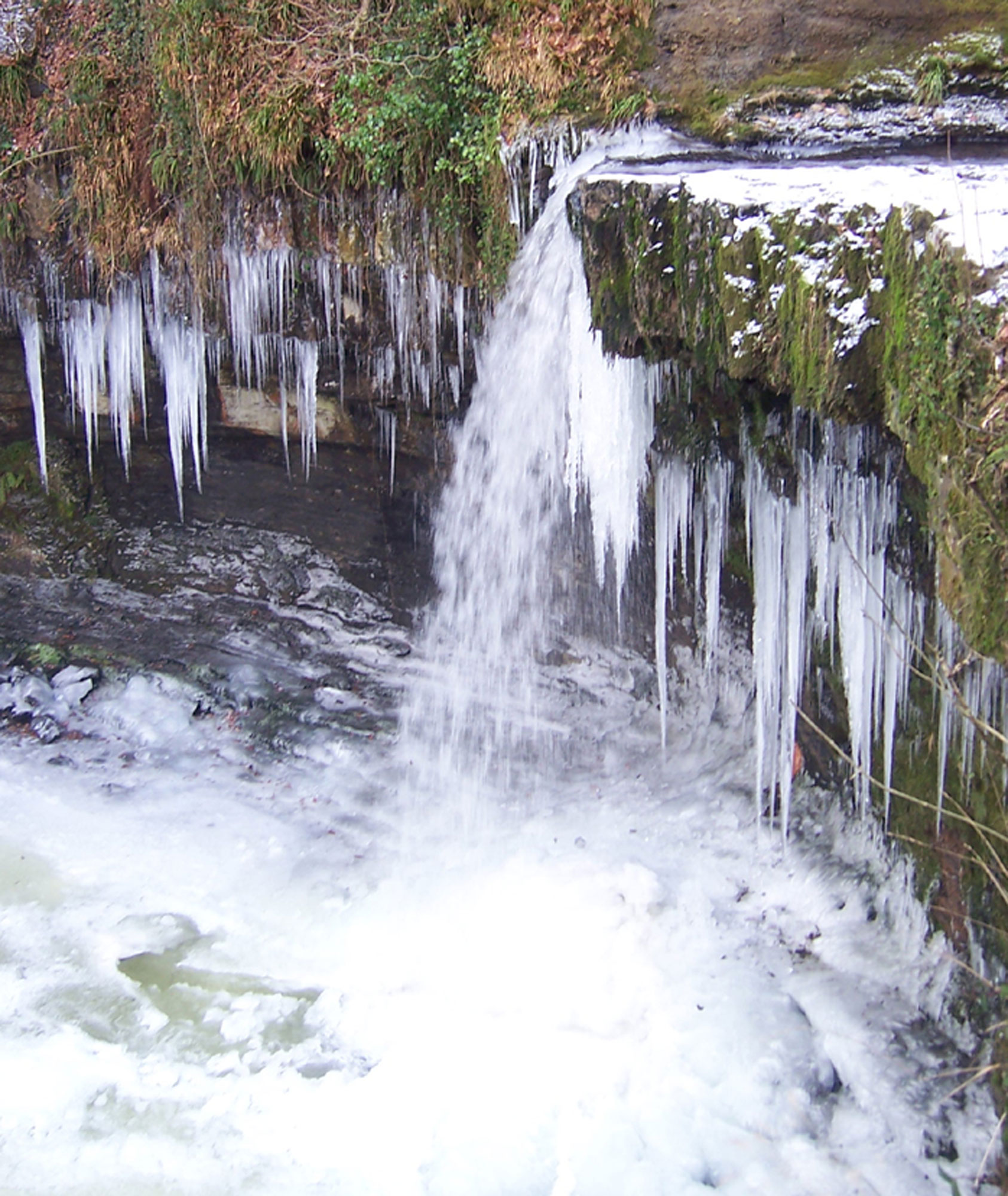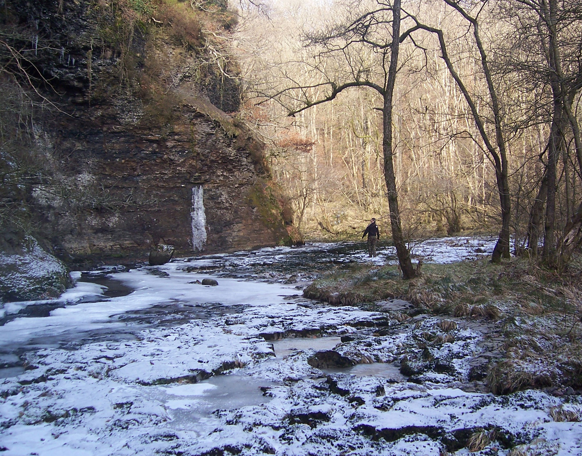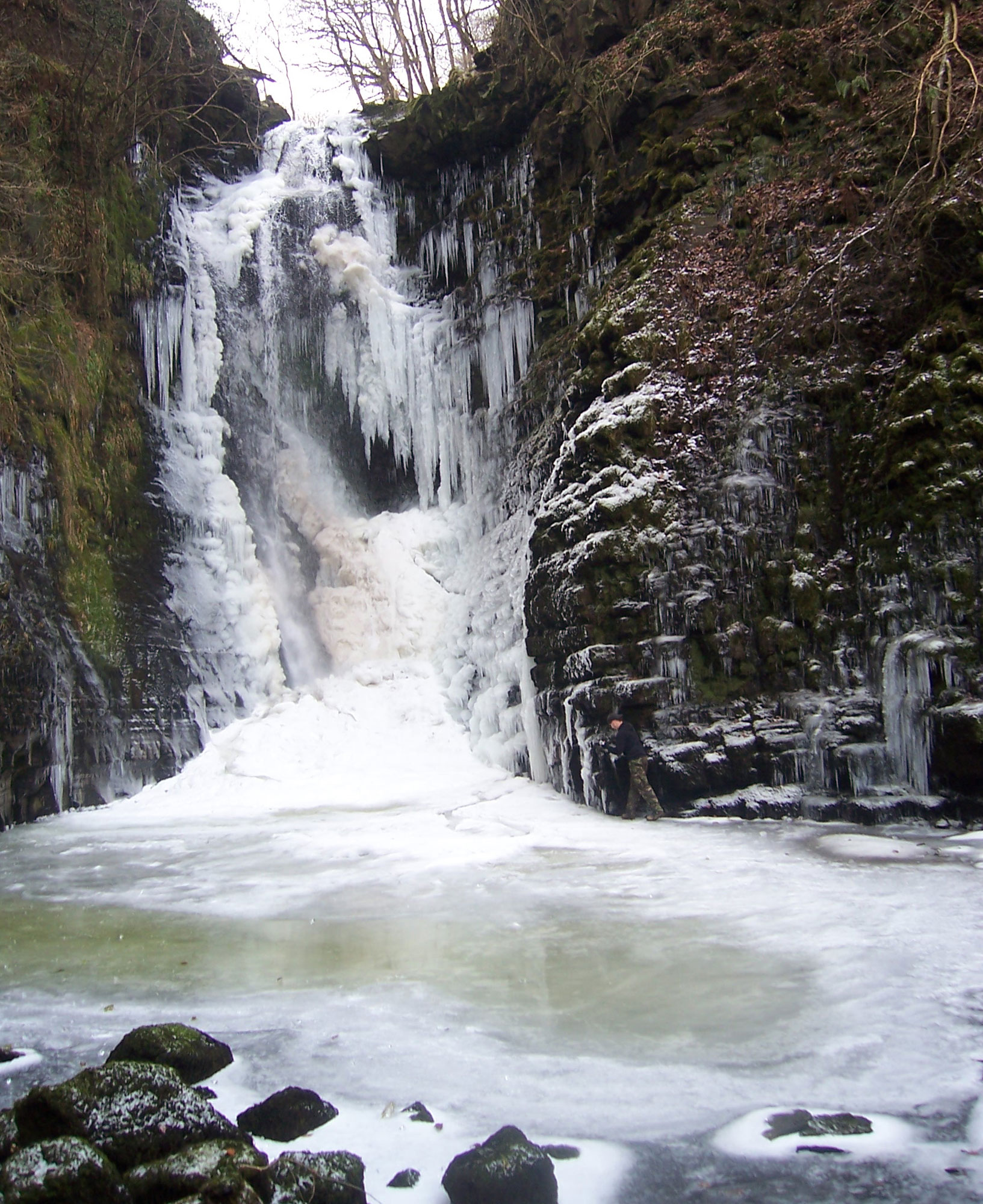 everywhere and with the river surface completely frozen from Sgwd Gwladys
