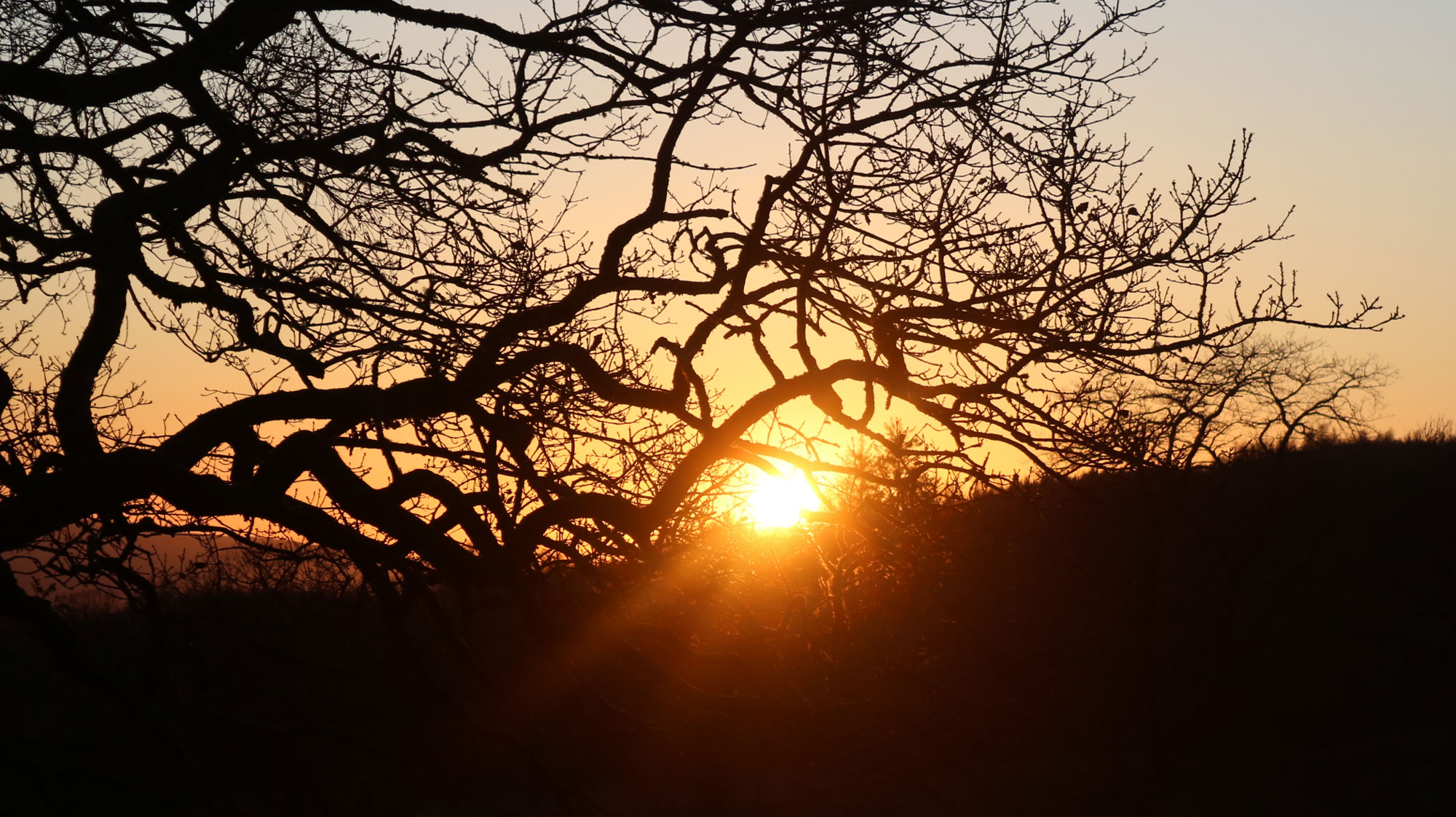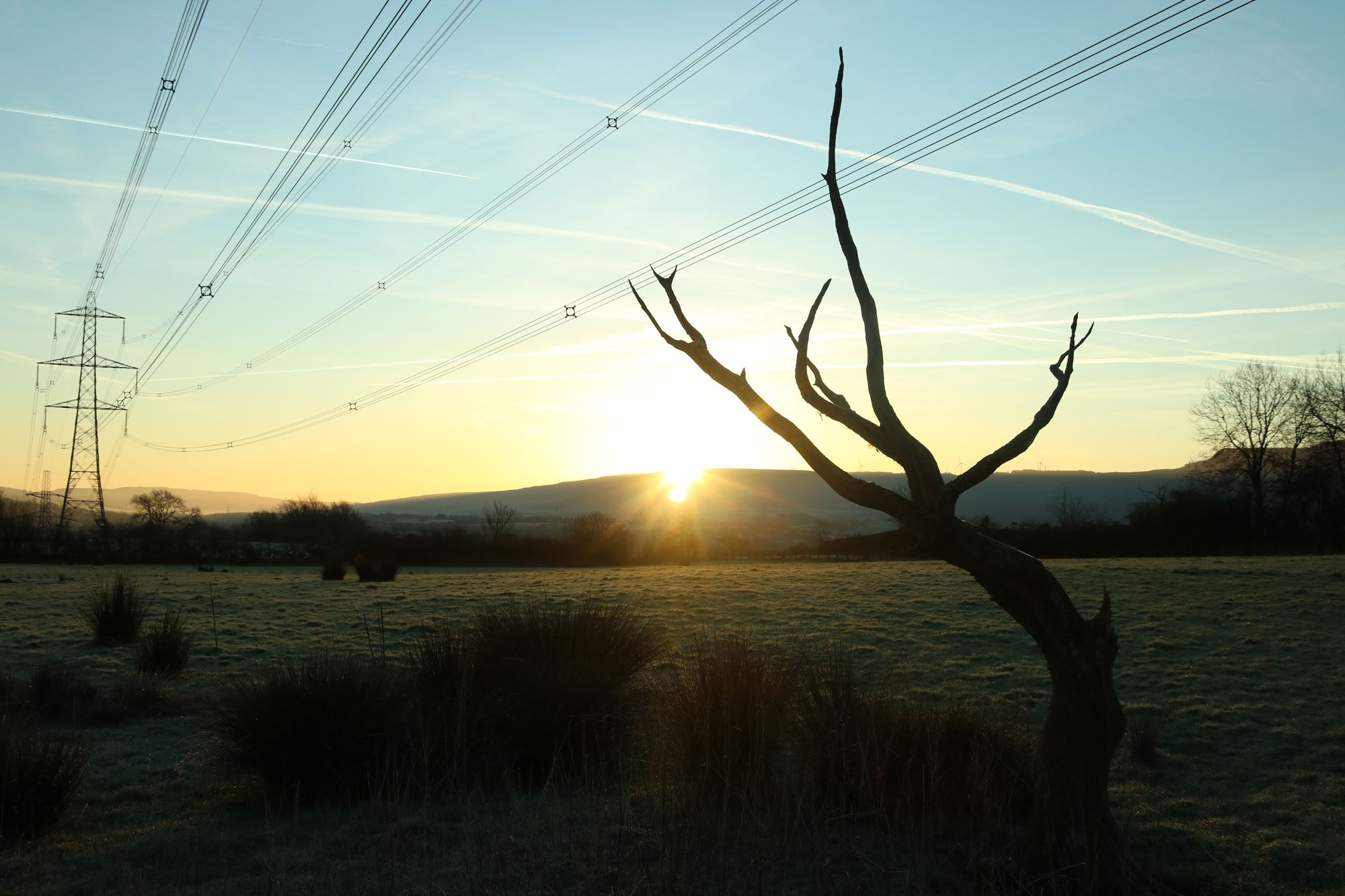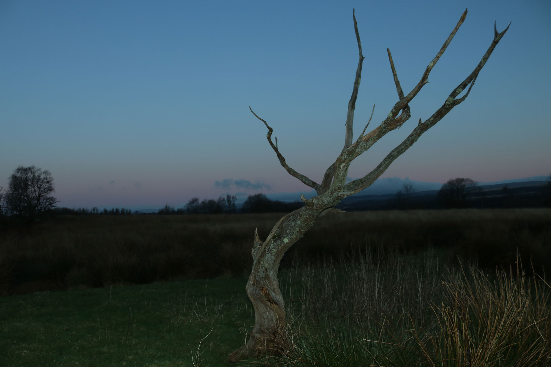 pre-sunrise pinking - tree-line from the Banwen Rd - A 5 mile walk to catch sunrise, early doors on the non-event |
