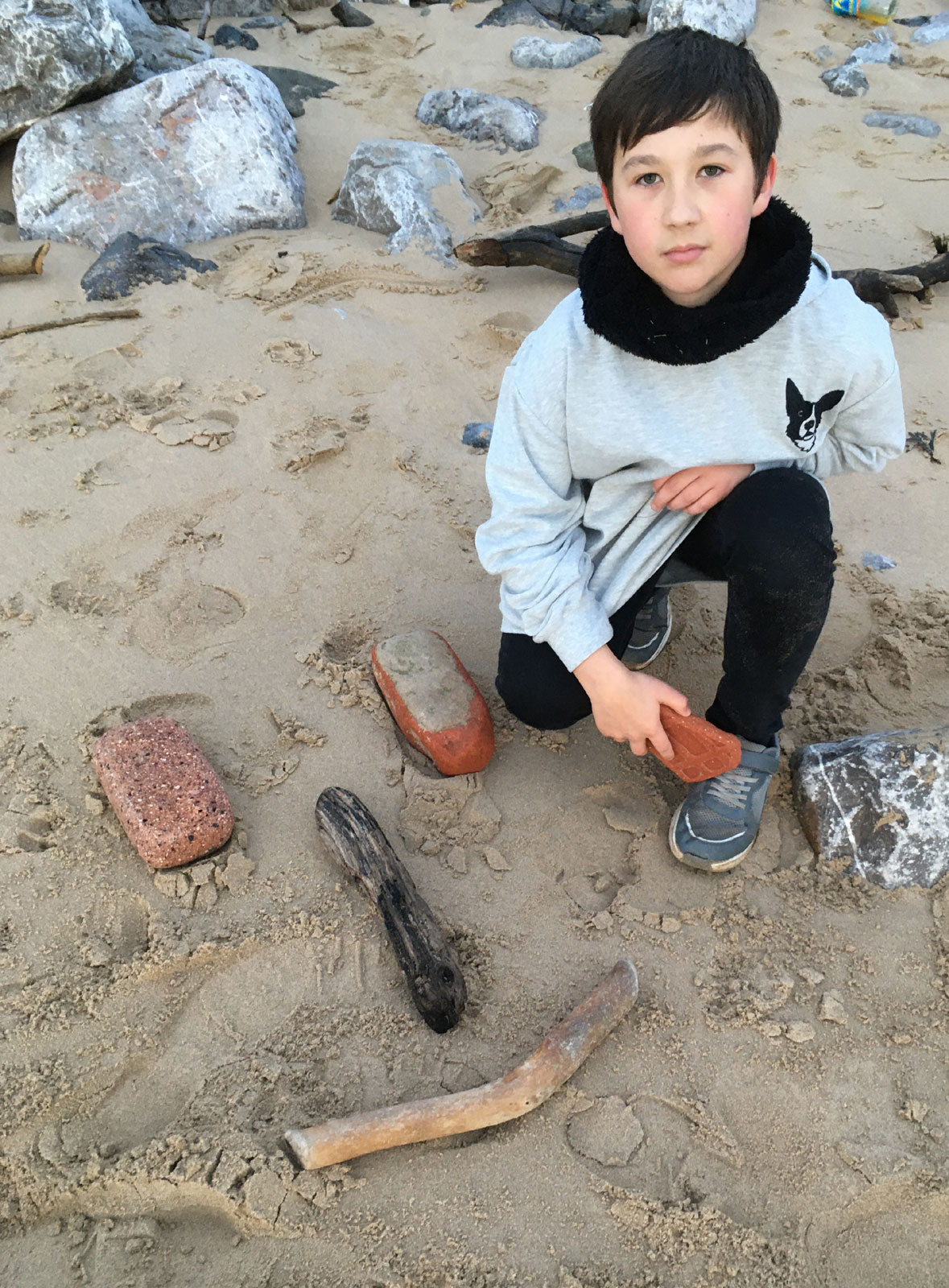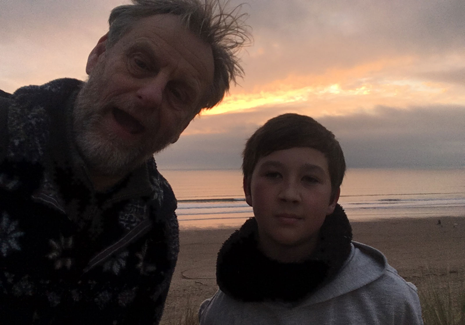 25 left sunrise from the top of PNF lane - right sunset on Aberavon Beach with Gethin. GT + DR flotsam & jetsam sculpture |