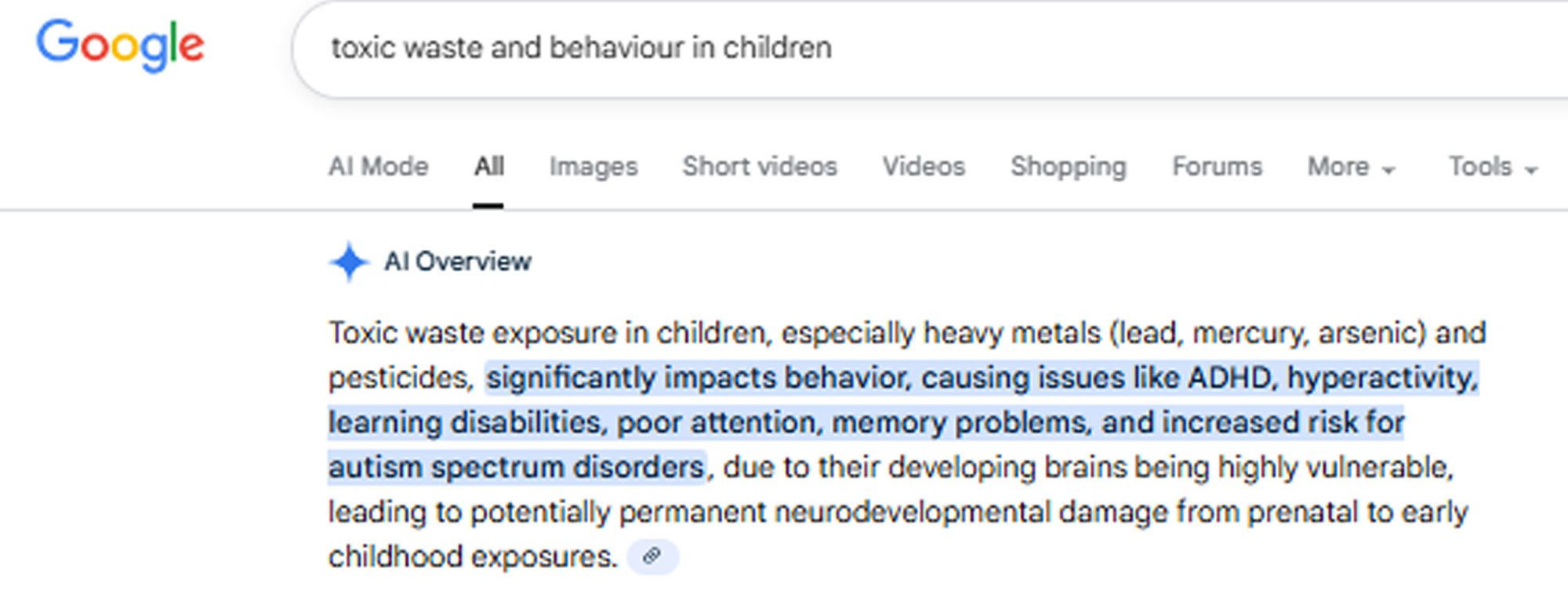 Toxic waste and behaviour in children |