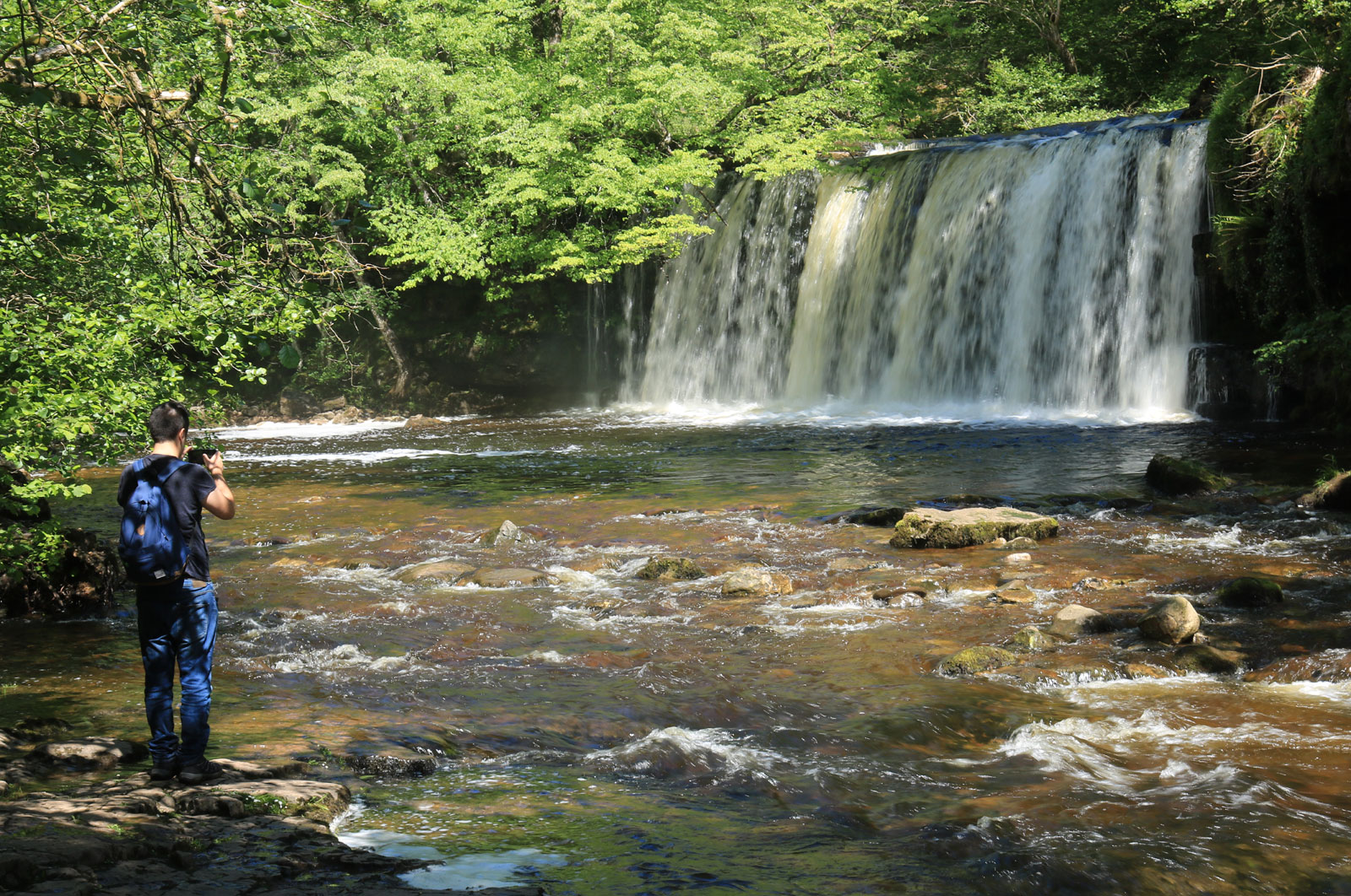 Simon and I headed up to Pont Melin Fach and followed the Nedd Fechan down to the Horseshoe falls and back. There was a medium flow on the river which gave the waterfalls a bit of body. |