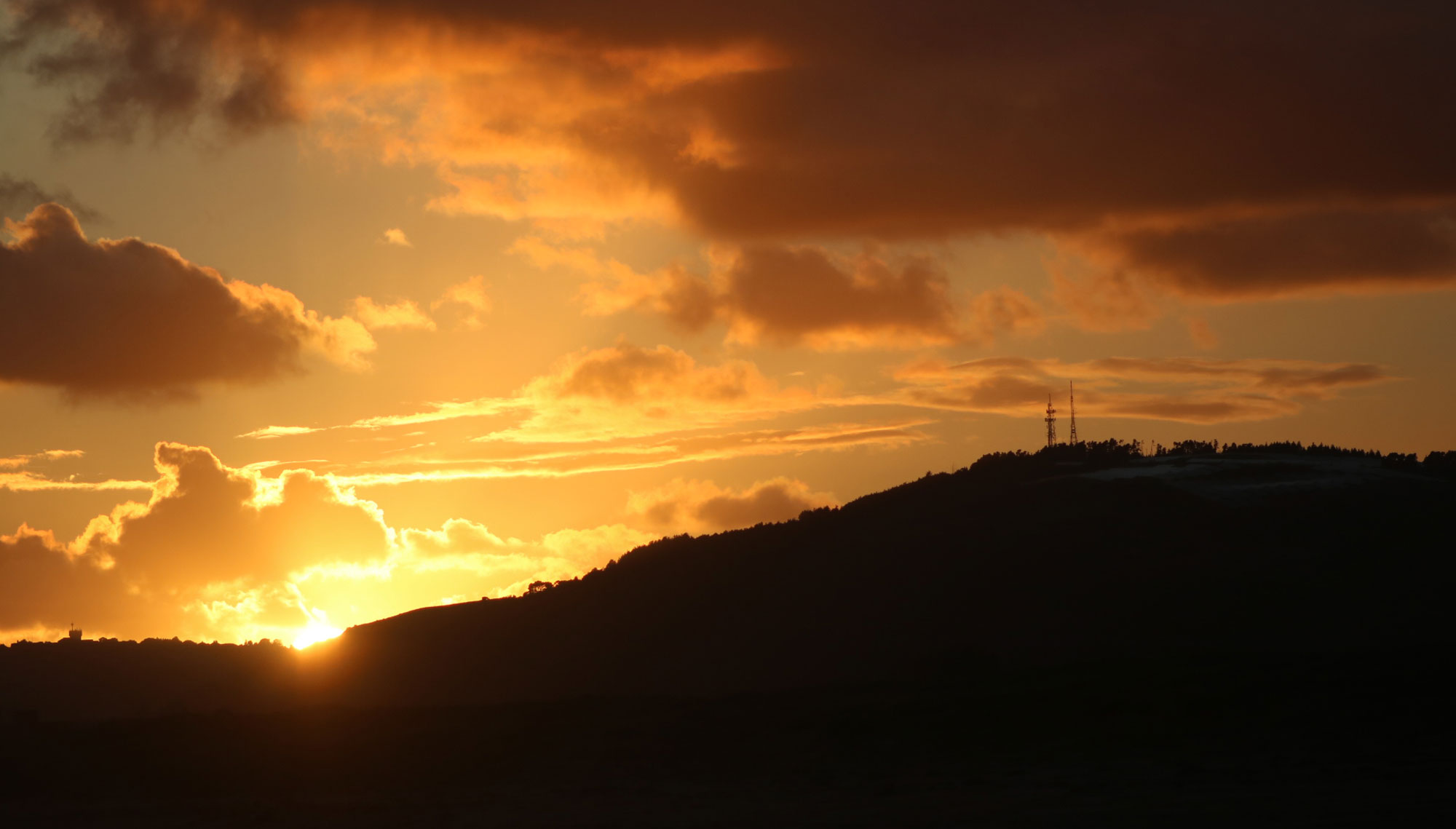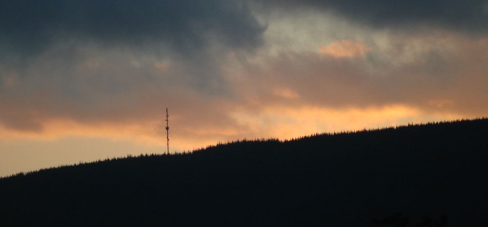15 September 2025 - sunset walk - the sun setting behind Hirfynydd mast.