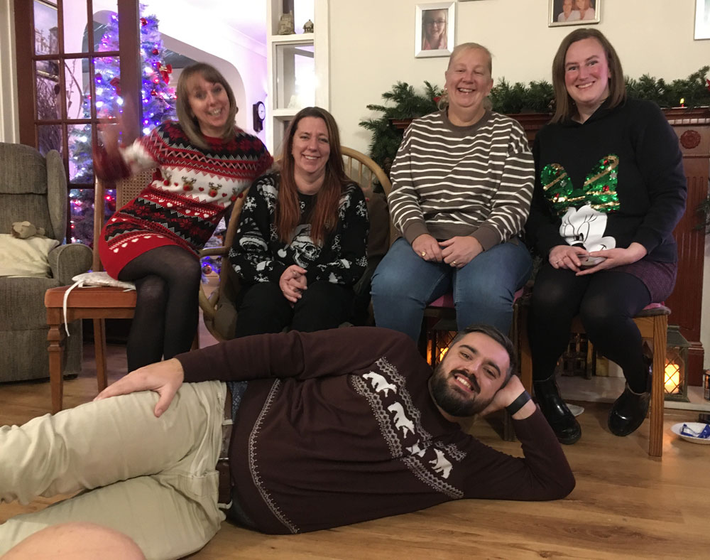 kids -2 + cousins -1 (Katie, Joanne, Andrea, Laurie & slumbering Simon.