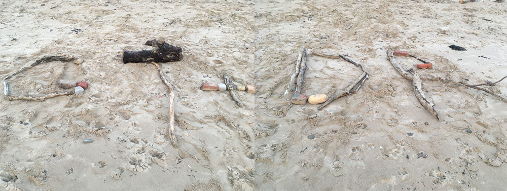 25 left sunrise from the top of PNF lane - right sunset on Aberavon Beach with Gethin. GT + DR flotsam & jetsam sculpture |